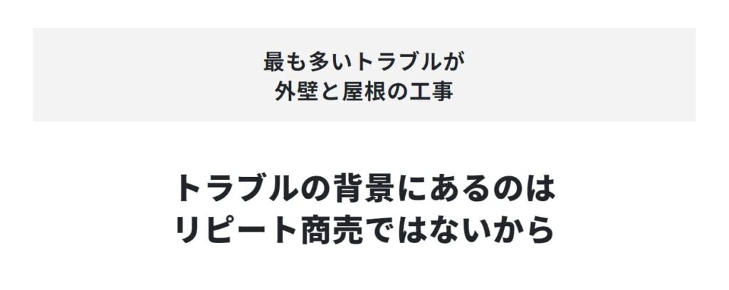 お客様が知らない、わからないからと嘘をついたり、知ったかぶり、オーバートークをするのが多い業界だと言えます。また、他の業種と異なり10年に1回程度の塗装工事となるため、リピート商売を意識しない都度感覚の業者がとても多い珍しい業界です。