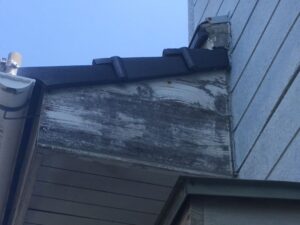 2枚目の写真では、屋根の端部にある破風板の塗膜剥がれが確認できました。