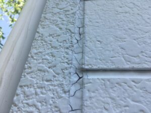 最後の写真では、外壁の目地部分にあるコーキングの割れが確認できました。