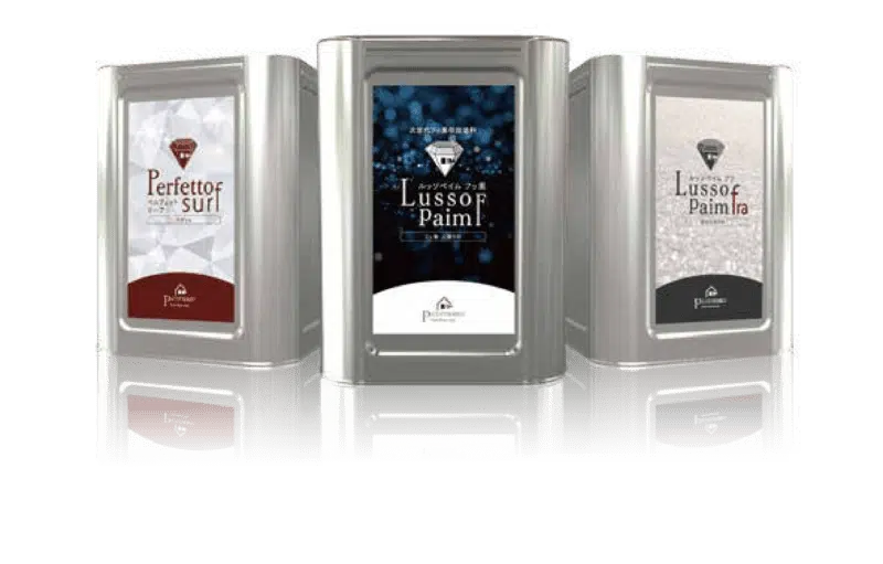ルッソペイムFは、最先端の研究開発と技術革新により配合割合を必要としない1液型で従来の2液型を超える超耐久性と超耐候性を実現しています。